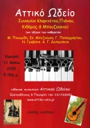 Κυριακή 11 Μαΐου 2025, 5:00μμ: Συναυλία κλαρινέτου, πιάνου, κιθάρας και μπουζουκιού των τάξεων των καθηγητών Μανούσου Πλουμίδη, Ελένης Μπεζούγλη, Γιάννας Παπαχρήστου, Νίκου Γραβάνη και Γιάννη Δεληγιάννη.