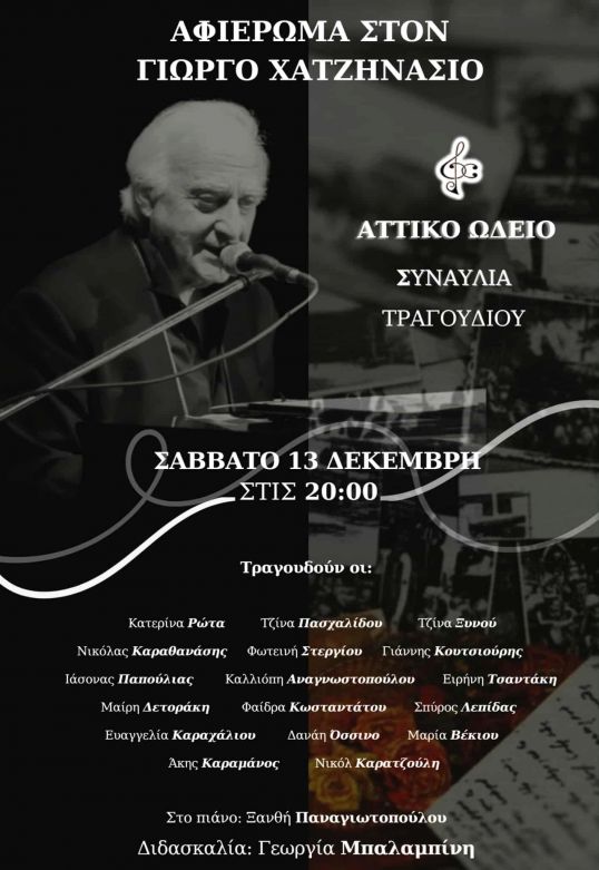 Συναυλία Τραγουδιού / Αφιέρωμα στο συνθέτη Γιώργο Χατζηνάσιο